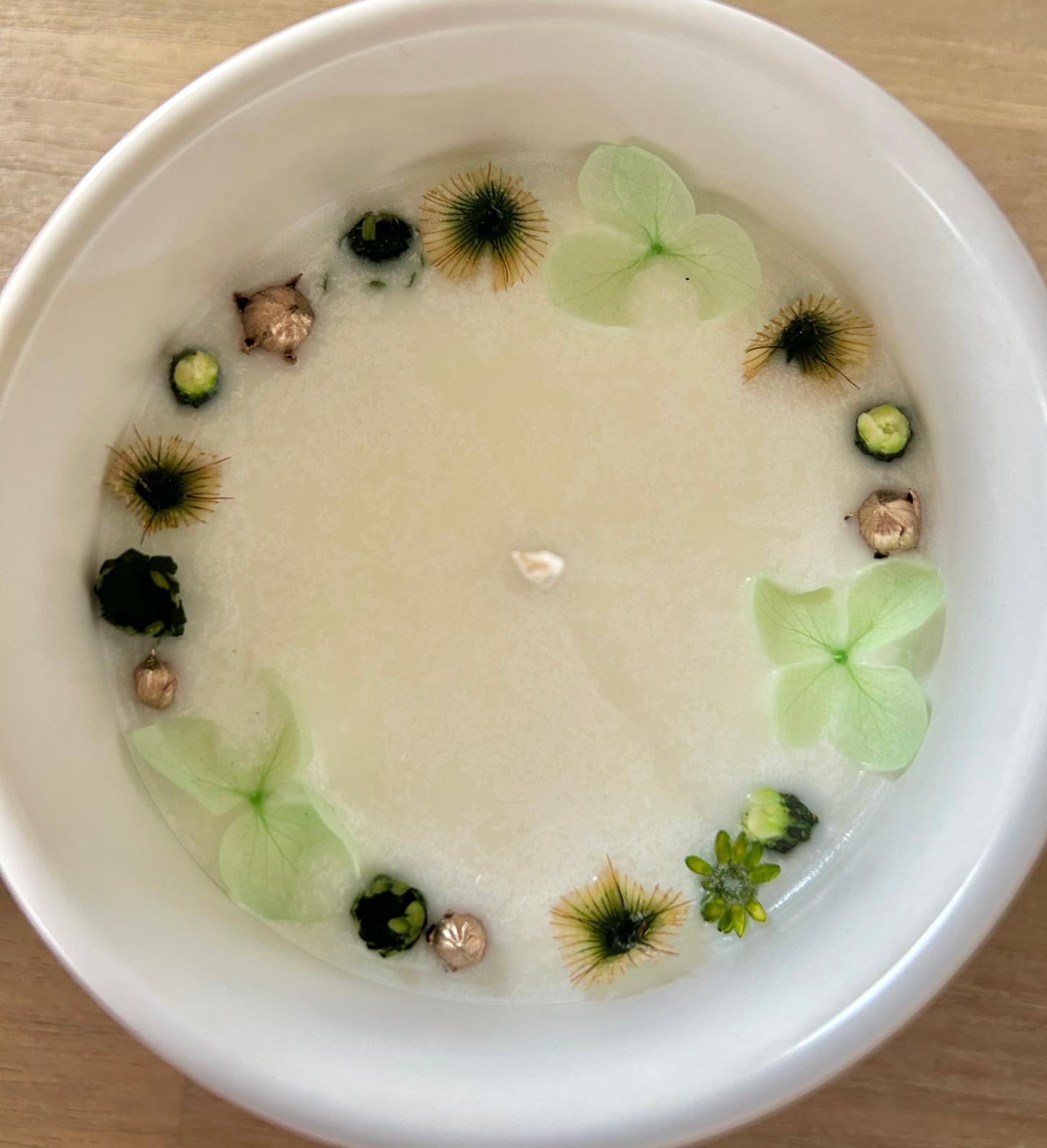 Des bougies artisanales réalisées avec des cires naturelles, agrémentées de fleurs séchées pour un design unique. Elles apportent une ambiance chaleureuse et élégante à votre intérieur.